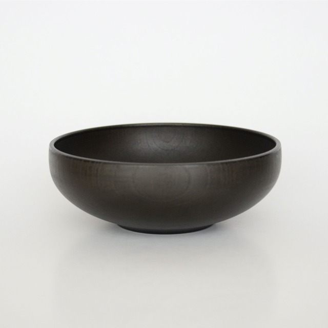 平井 岳・綾子 作 銀蒔地 鉄鉢 黒 てっぱつ、とは、僧が托鉢 (たくはつ) で食物などを受けるのに用いる応器。 その美しいかたちを日々の器に写して作られた器です。 スープボウルやサラダボウル、和風パスタやお鍋の取り鉢。 銘々でも、お惣菜を盛るのにも。 汁粉やかき氷など、さまざまにお楽しみいただける万能の器です。 ::: 福島県猪苗代町在住の塗師、平井岳さんと綾子さん夫妻による木と漆にまつわる制作工房です。 オリジナルのデザインによって木地を発注し、その木地に漆を塗りあげて完成させていく仕事。 上塗りには、自ら掻いた国産漆(樹液)を用いることによって、得も言われぬ艶が生まれます。 漆をこよなく愛するおふたりならではのものづくりは、古来からつながる確かさと、現代のデザインが融合したヒナタノオトお薦めの漆器です。 日々の食のうつわに漆の椀を。 繰り返し手にするほどに硬く丈夫になり、すべらかな艶が深まってゆく、育てる愉しみのある器です。 サイズ:直径約16.1cm 高さ約5.9cm 底面直径約7.1cm ※専用のお箱がございます。 -- ◯漆について 私たちは漆の採取、『漆掻き』に取り組み 自ら山で採った漆を精製して作品を制作しています。 (現在は上塗り、最終工程に使用しています) その一番の特徴は塗りあがりの透明度と質感にあります。 漆は、採り方、精製方法、乾かし方で品質が大きく変わり、気候や漆の様子を見極める必要があります。 一つ一つの工程の中で漆が生き物であることを実感しながら 自分たちの作品に合う漆、漆に合うかたちを追い求めています。 そういった自分の意思だけではままならない部分にこそ美しさを感じます。 漆器は時間が経つと次第に明るくなり、艶が出てきます。 使い手の方に育てていただき、その美しさを感じていただければ幸いです。 ◯漆器の取り扱いについて ・電子レンジ、食洗機の使用はできません。 ・使用後は食器用洗剤とやわらかいスポンジで洗ってください。 ・沸騰しているものを注がないでください。変色の原因になります。 ・器の使い始めは漆のにおいが気になる場合がありますが、繰り返し使用していただくことにより、においが軽減されます。 ・塗り直しや修理を承っております。お気軽にご相談ください。 --