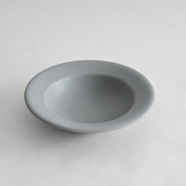 樋口 萌 作 18 染付リム小皿 三重県で作陶に励む樋口萌さん。 マットな温かみのある乳白色の釉薬と、ノスタルジックな色調の染付のハーモニーが印象的な陶器を制作されています。 高台部分に縄目文様を施し弁柄を巻く意匠が、さりげなくも存在感ある器に仕上げています。 - サイズ:直径約12.5cm 高さ約3cm