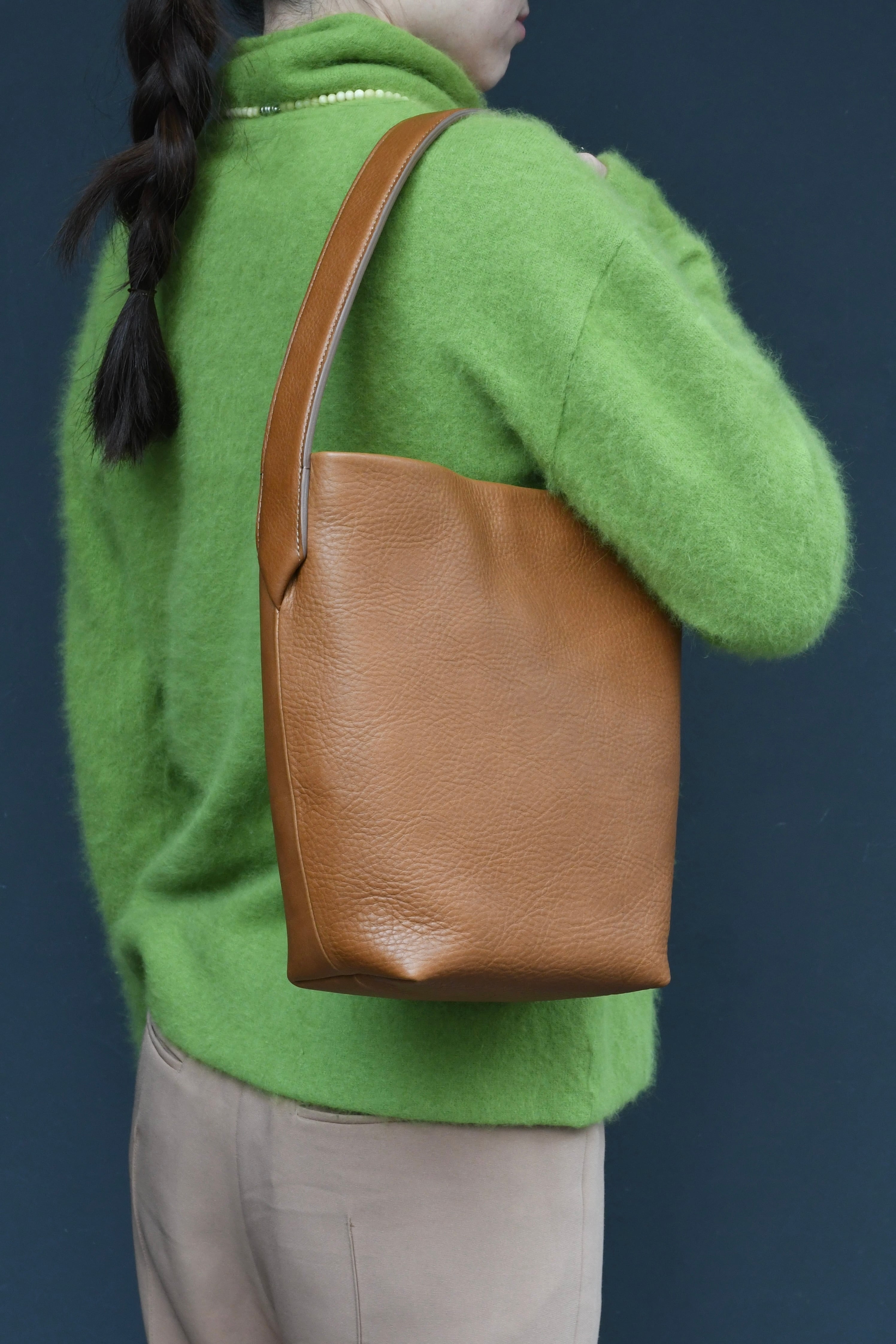 カバンのメーカーで経験と技術を重ね、独立後も試作と試用を重ねてつくられる谷田貝陵子さんの仕立ての美しい革のバッグ。