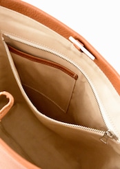 内装のポケットはファスナーを開けると小さいポケットが付いていて、鍵やリップスティックをサッと取り出せるよう工夫されています。