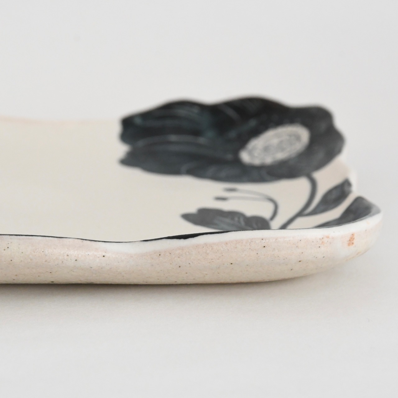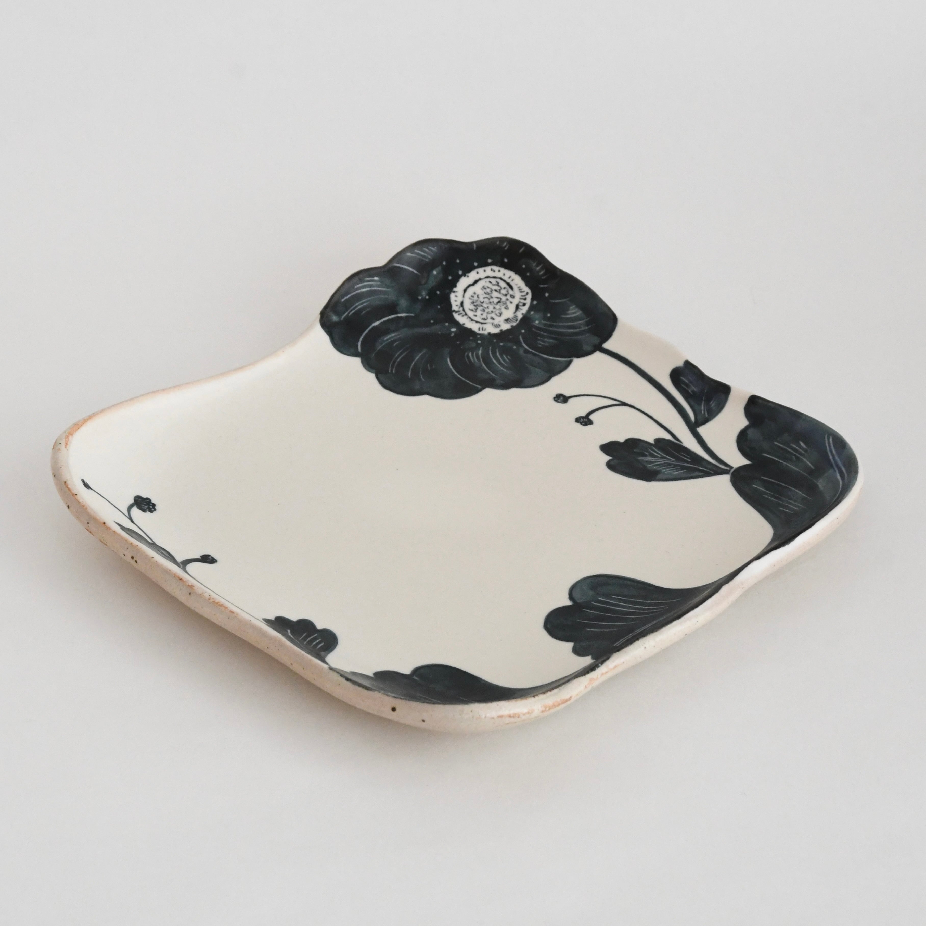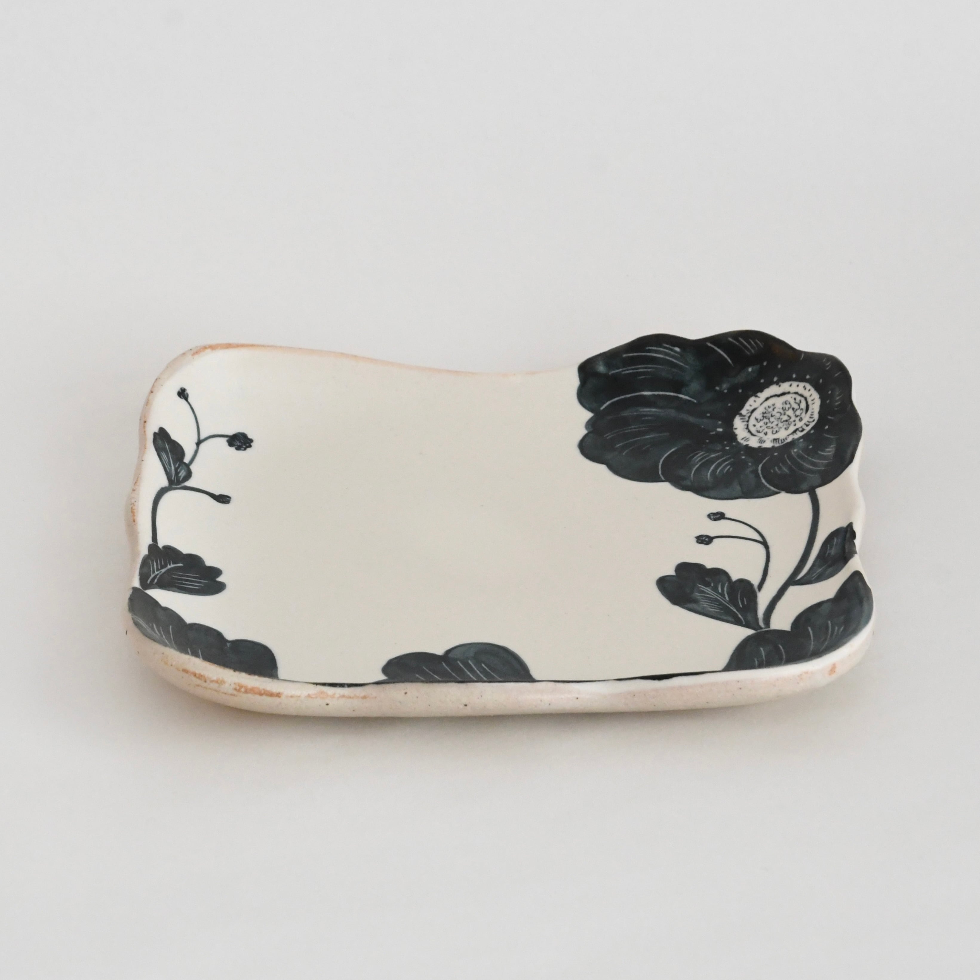 大谷桃子 作 黒い花 縁取り角皿 LL