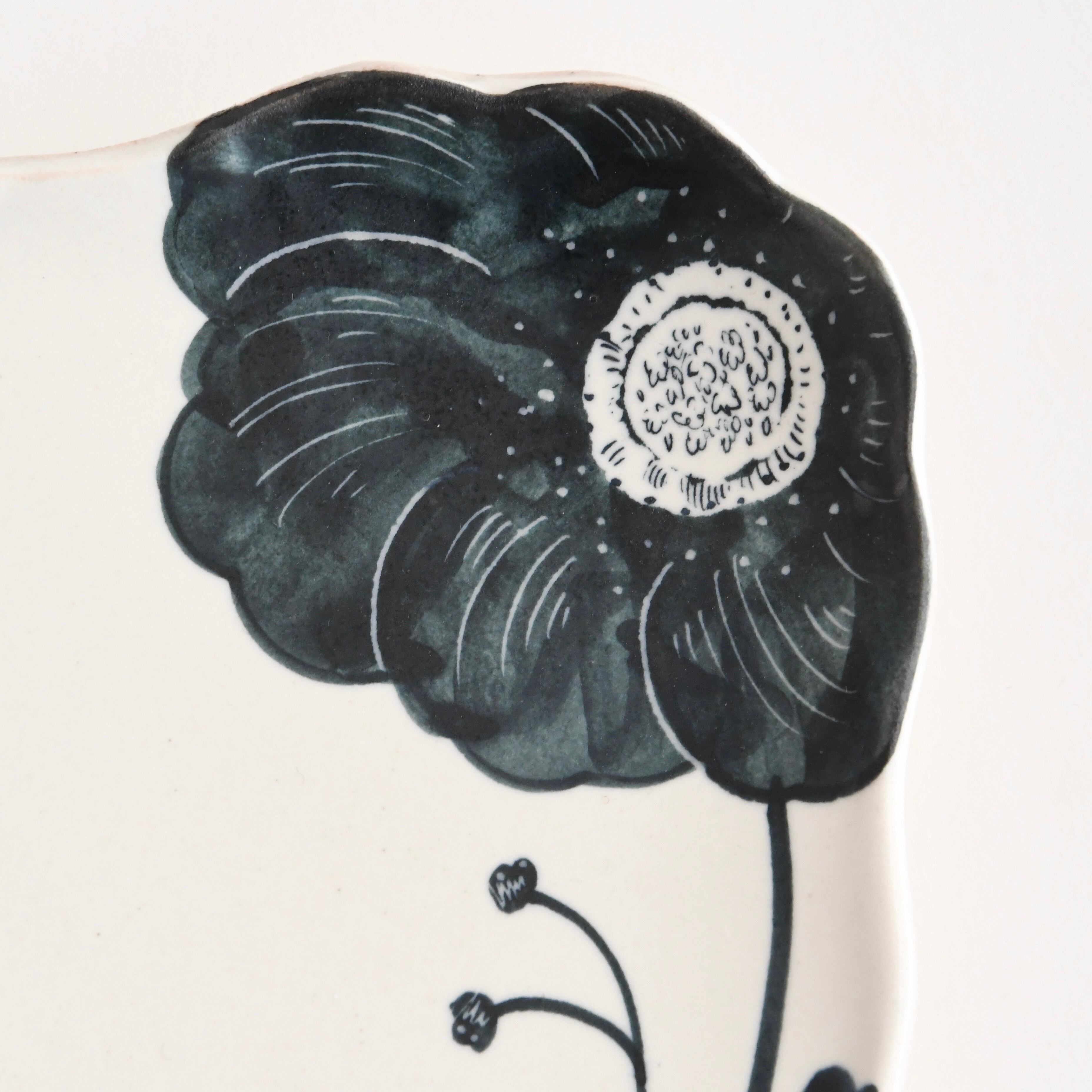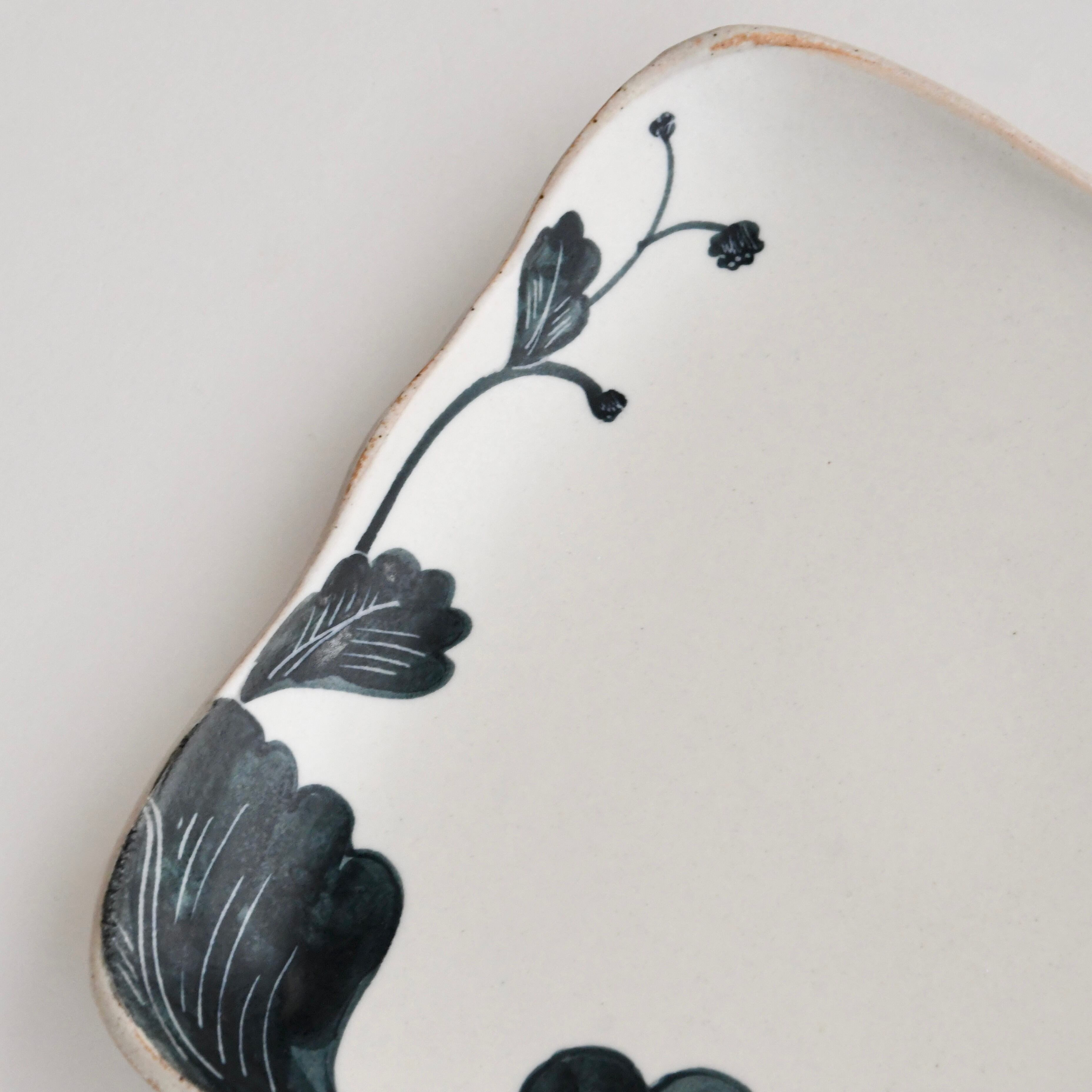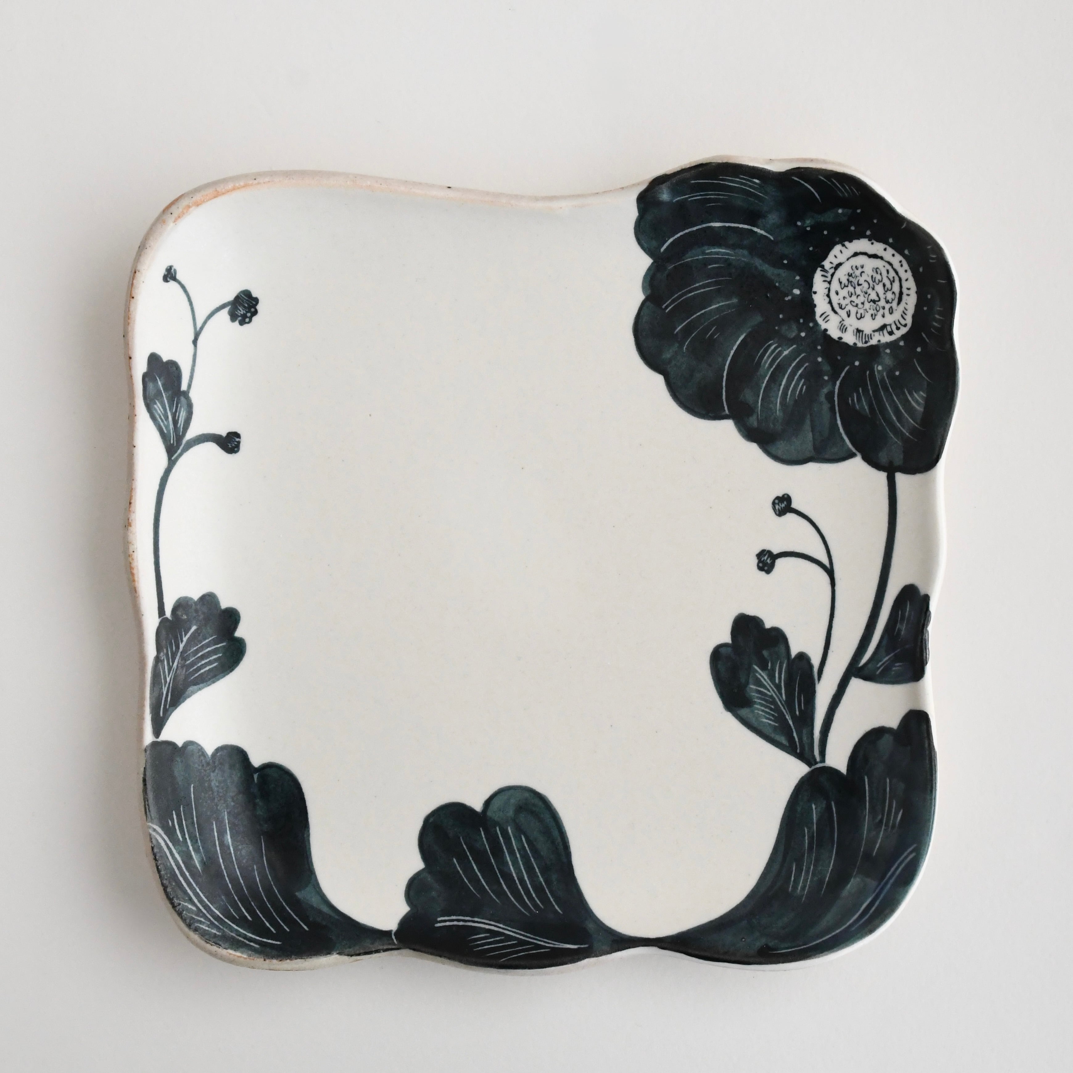 大谷桃子 作 黒い花 縁取り角皿 LL